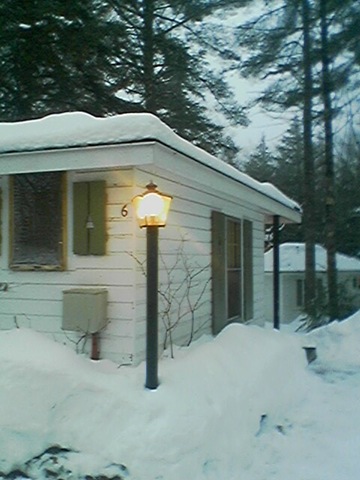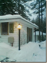 Here is a picture of our little winter cabin surrounded by woods. As you can see, there was plenty of snow on the ground- about 2 feet. It was a lovely cabin with extra amenities such as the fireplace and full kitchen. It came fully stocked with supplies and equipment - we only had to bring food. The property we stayed at is called 'Sunny Brook Cottages' and I highly recommended the place for an affordable snowy or summer getaway in the mountains.