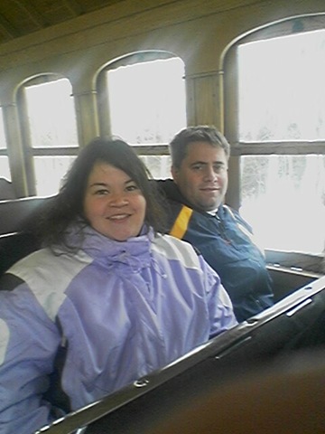 In West Virginia, J and I had previously ridden a steam train that zig zagged its way up a mountain side. This, this is totally different- the steam engine pushes a passenger car straight up the mountain, kept in place with gears that run along the middle of the track. This is not a journey for those with a fear of heights by any means. The train moves at a racing speed of 3 miles per hour up the mountain and 6 miles per hour back down to the base station. At the destination point [halfway to the summit] the train is stopped for folks to get out and walk within a roped off area of the mountain side (snowy, icy, and steep!) for picture-taking. I have to admit I was pretty scared to walk around up there. One slip and down down down you go. Here are some of our favorite shots from the train ride...