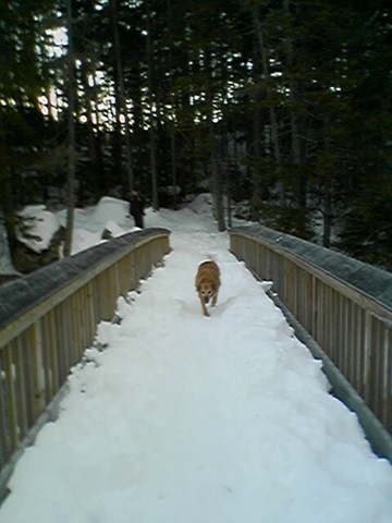 We went back to the cabin after that and napped for awhile before getting into our hiking gear again and taking the pups out for another winter walk. This time we did another trail in the White Mountain National Forest that loops around a frozen pond.